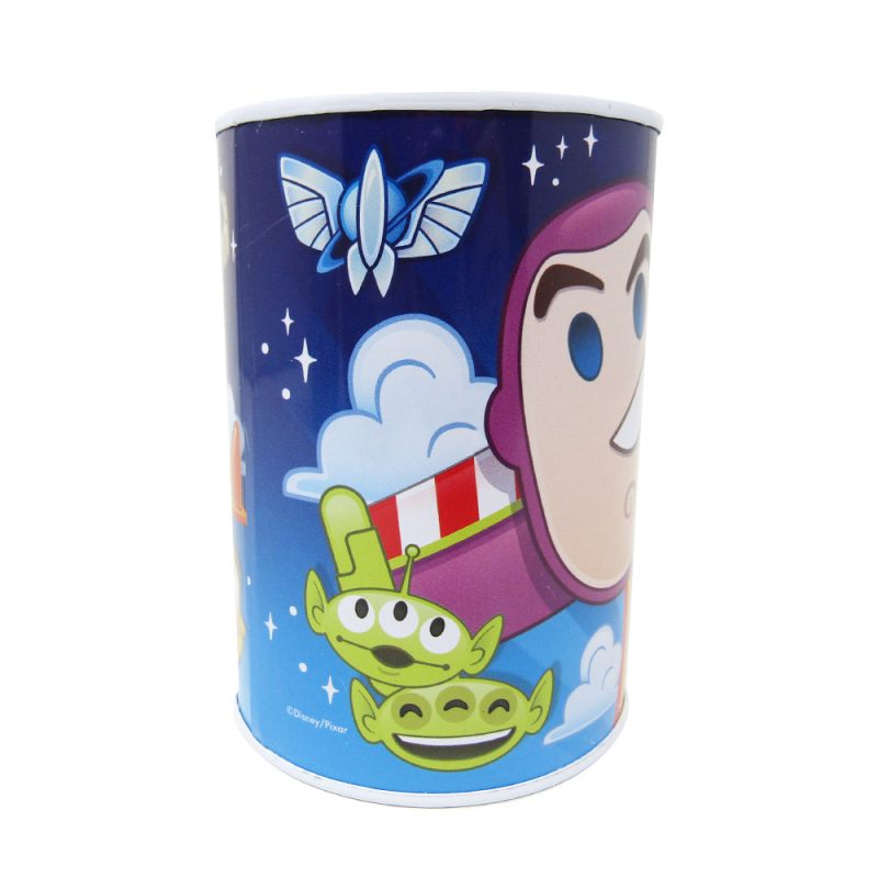 Alcancía metálica cilíndrica sin tapa, requiere un abre latas para abrirse.